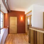 Im Rahmen des nachhaltigen Gesamtkonzeptes spielte das gesunde Raumklima eine wichtige Rolle. Auf Grund seiner baubiologischen Eigenschaften ist Lehm der ideale Baustoff um ein gesundes und angenehmes Raumklima herzustellen. Schwere Lehmbaustoffe sorgen für ein angenehm ausgeglichenes Raumklima zu jeder Jahreszeit. Sie arbeiten als thermische Speicher, wärmen den Innenraum bei niedrigen und kühlen ihn bei hohen Außentemperaturen. Das ökologische, schadstofffreie Baumaterial schafft diffusionsoffene, atmungsaktive Oberflächen, die sowohl Wärme als auch Luftfeuchtigkeit aufnehmen, um beides im Anschluss gleichmäßig wieder abzugeben. Das schafft eine stabile Temperierung, bindet Staub und Gerüche und senkt nachweislich das Risiko von Schimmelbildung. Ein starkes Plus auch für Allergiker!